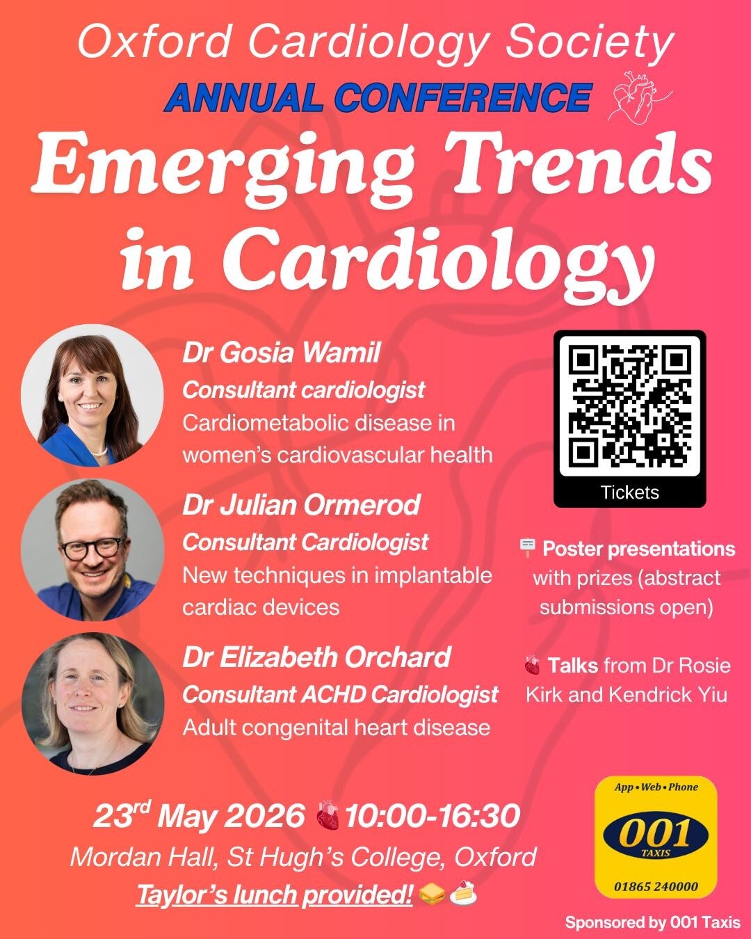 Join us for a day of insightful talks from leading cardiologists and academic researchers, engaging poster presentations, a practical hands-on activity, and a complimentary lunch. The Oxford Cardiology Society is delighted to host its second annual conference at St Hugh's College, Oxford, focusing on 'Emerging Trends in Cardiology'.